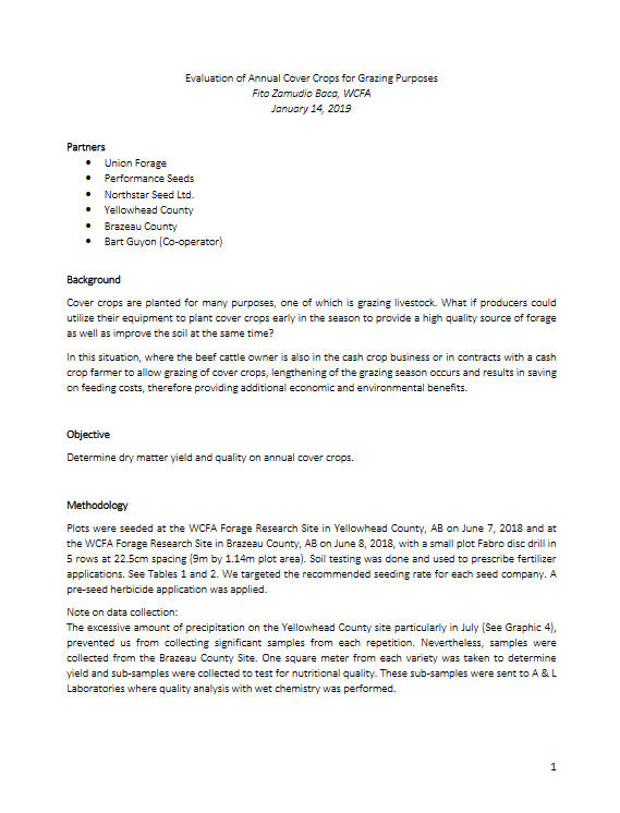 Evaluation of Annual Cover Crops for Grazing Purposes