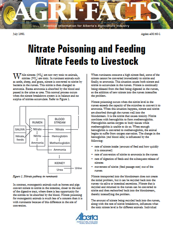 Nitrate Poisoning and Feeding Nitrate Feeds to Livestock